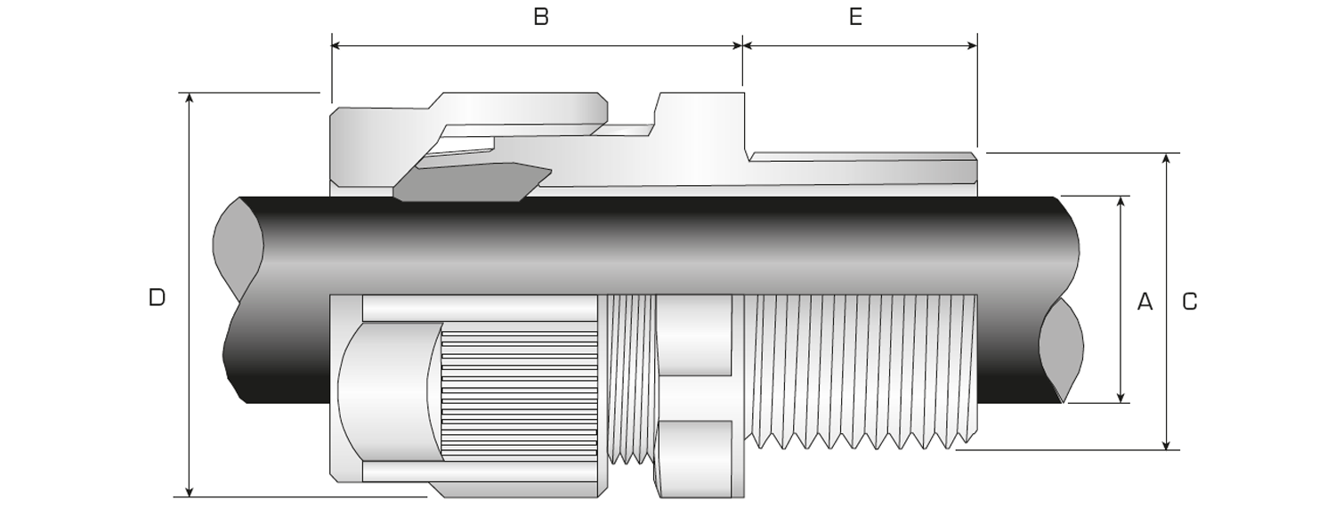 Dual Seal Available Entry Threads 'C'Overall Cable Diameter 'A'Across Flats 'D'Across Corners 'D'Protrusion Length 'B'