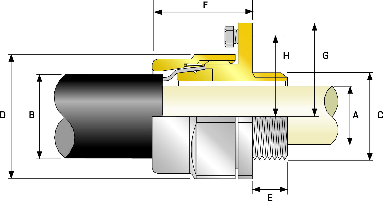 Cable Gland SizeAvailable Entry Threads "C" (Alternate Metric Thread Lengths Available)Cable Bedding Diameter "A"Overall Cable Diameter "B"Armour RangeAcross Flats "D"Across Corners "D"Protrusion Length "F"Nominal Radius DimensionCIEL Earth Bolt SizeEarth Fault Current Rating (kA)Combined Ordering Reference (*Brass Metric)Cable Gland Weight (Ozs)