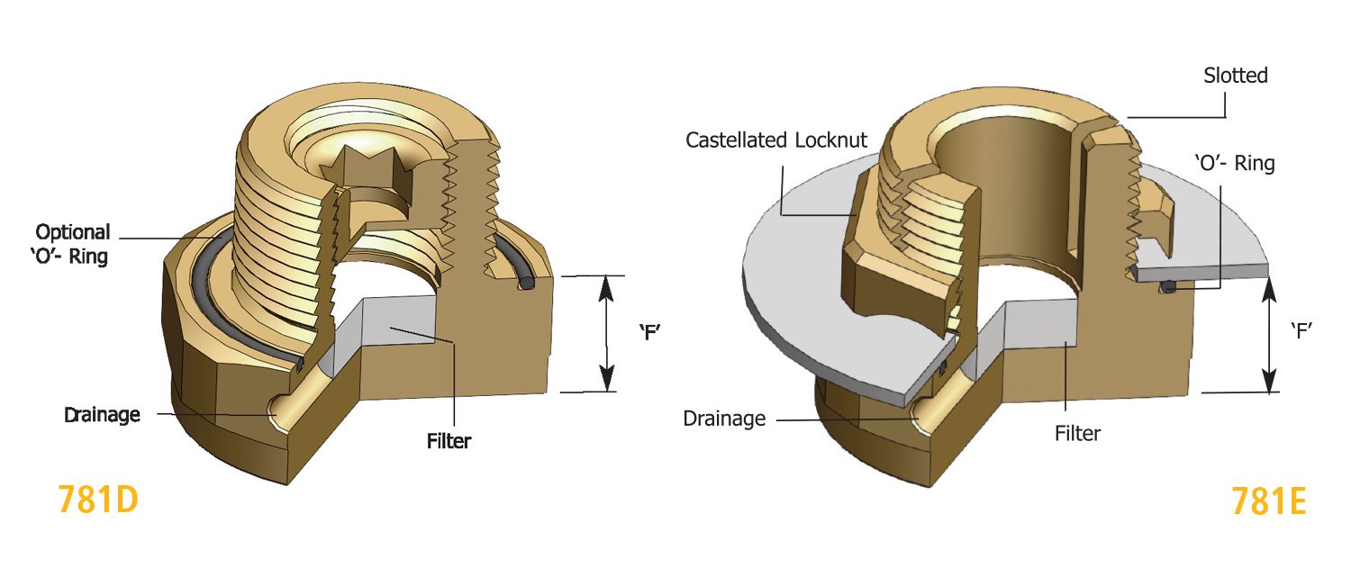 HOW TO ORDER A guide on how to order Breather Plug & Drain Plugs from CMP: e.g. 781 – D – M – 3 = Ex d – M25 e.g. 781 – E – M – 3 = Ex e – M25 Other Thread Variations are available on request. For further information on ordering please refer to how to order. The CMP 781E range of Increased Safety type ‘e’ breather plug / drain plugs have been tested together with CMP serrated washers to ensure that in areas that are subject to vibration, the breather plug / drain plugs do not suffer from self-loosening and in advertently fall out of the enclosure. Serrated washers are not included as standard but can be ordered separately.