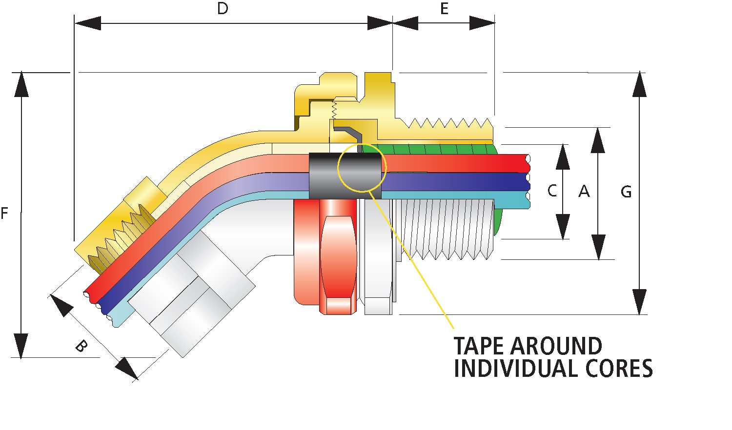 Female Rear Thread Size 'B'Diameter over Cores "C"Max. number of CoresMax Protrusion Length 'D'Max Overhang Length